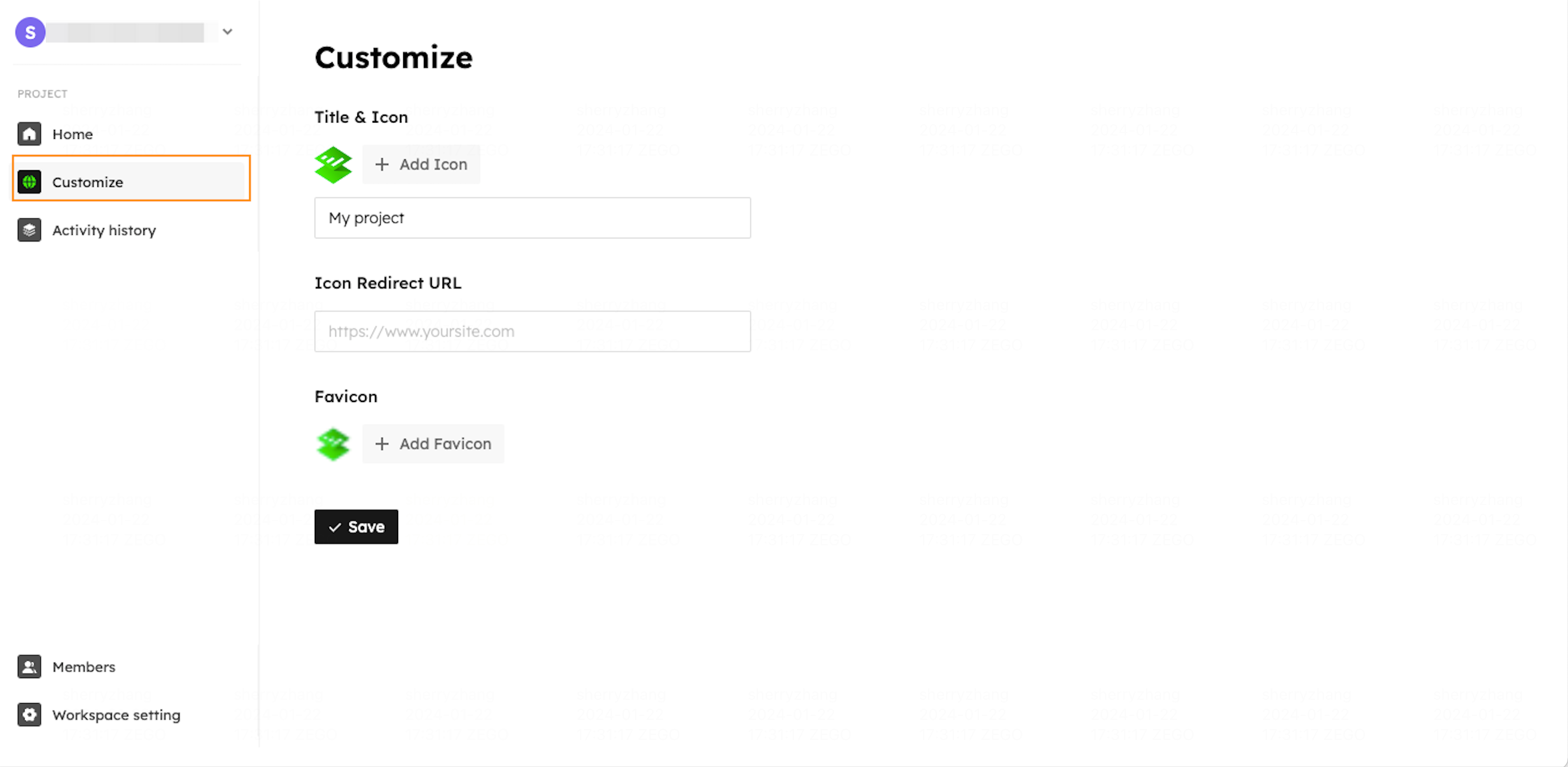 My projectYou can set your website title, header logo with its redirect url, and favicon in your project Customize tab with ease.