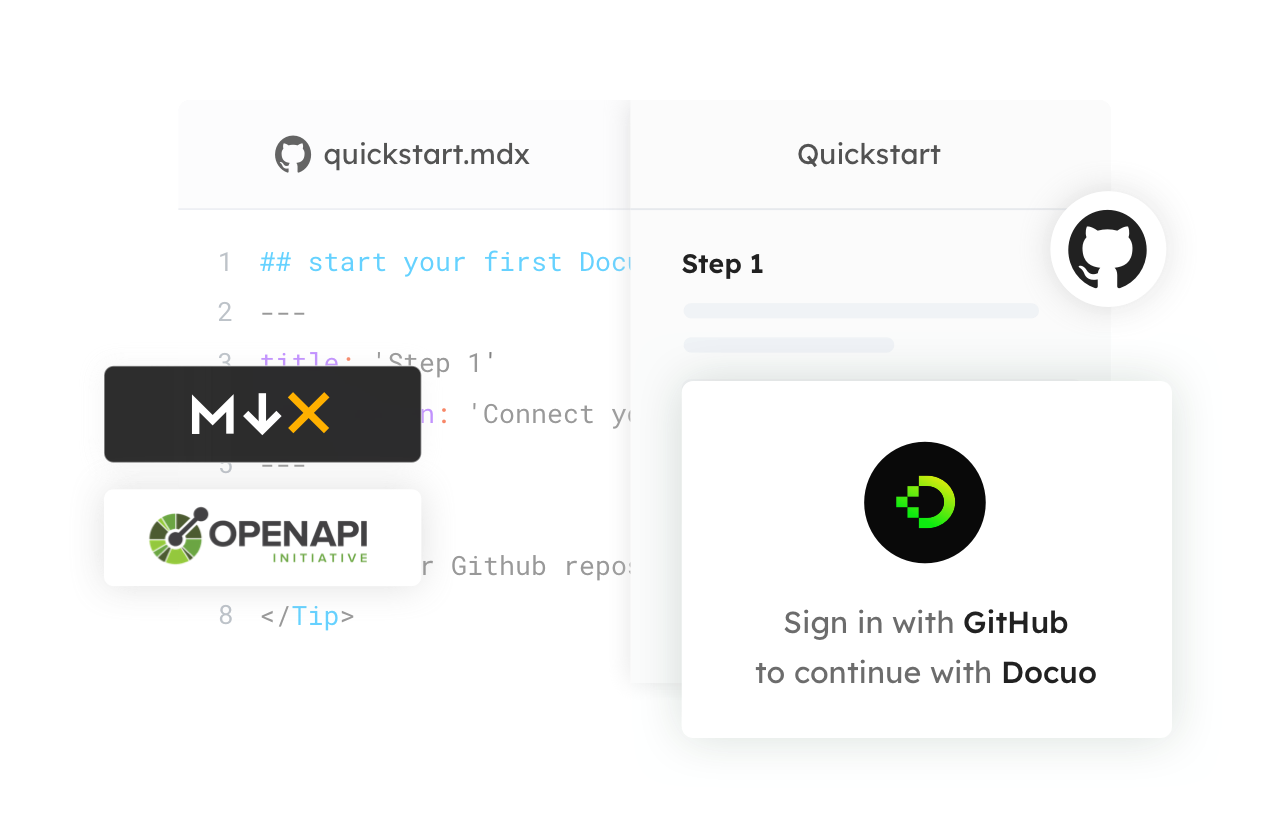 To start your project, you'll link your Github repository, and leverage the MDX, OpenAPI documents for website generation, while keeping the contents live alongside your codebase.
