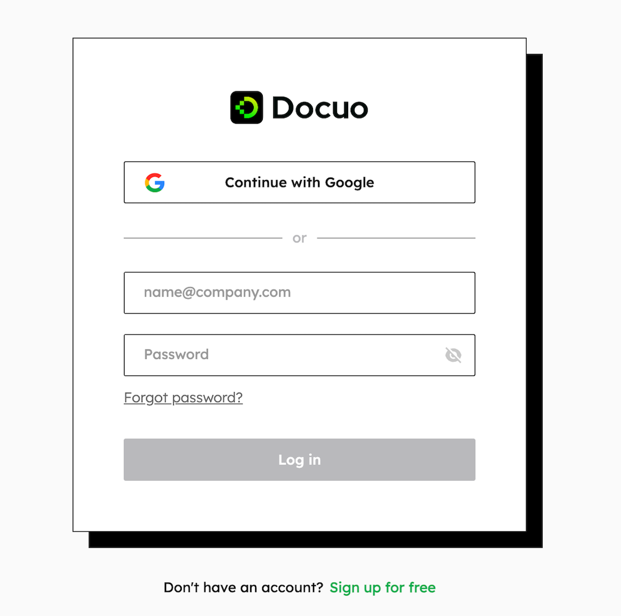 To get started with Docuo, you need to create a personal account and verify your email address. You can also directly sign up with your Google account. If you have already signed up with an account, log in to continue with Docuo!